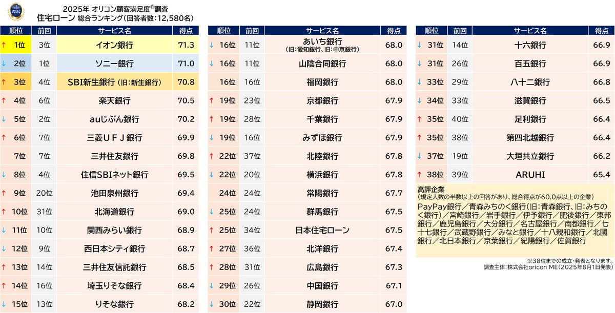 一生涯で最も大きな買い物の一つである住宅。その購入に際して多くの人が住宅ローンを組む中、オリコン顧客満足度調査が「住宅ローン総合ランキング」を発表した。その結果は、メガバンクではなくネット系や流通系銀行の台頭が顕著なものだった。