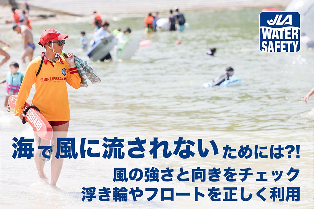 海水浴場に着いて最初に行うべきことは何か。ライフセイバーは、まず「風のチェック」だと答える。風が強いと浮き輪やフロートなどの浮き具が流されやすい。波が高くなり、突然、離岸流が発生することもある。砂浜に立っている旗を見たり、ハンカチをなびかせるなどして、風の強さと方向をチェックすることが重要だ。日本ライフセービング協会は、風に関連する海水浴場での注意点を呼びかけている。