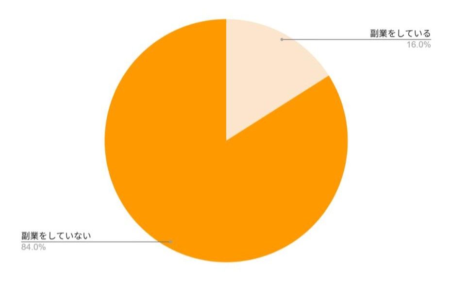 それによると、まず副業をしている人は、わずか16%で、まだまだ副業は少数派ということがうかがえる。