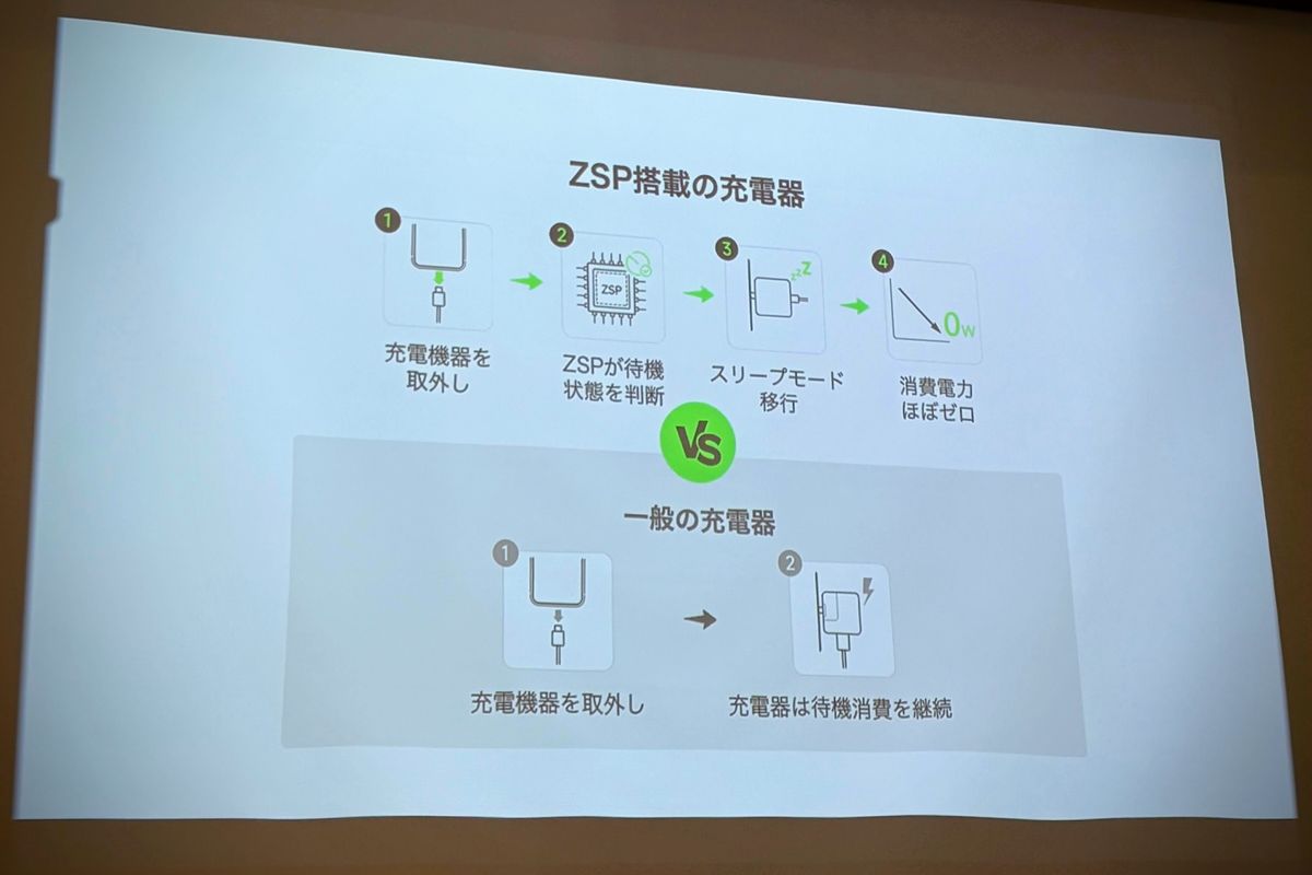 待機電力ほぼゼロに抑える「ZSP」技術採用のUSB充電器も同時登場