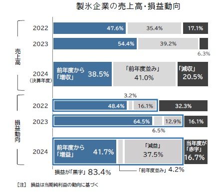 特に、近年の記録的な猛暑により、家庭での需要に加え、コンビニコーヒー向けの需要も拡大しており、製氷企業の4割近くが前年から増収を確保している。アイスポールなどの付加価値の高い小売やインバウンド客の増加により飲食店や宿泊業向けの需要も増加。かき氷店や露店からの引き合いも増大するなど、冬場も工場を稼働させて夏に備えている企業もあるほどだ。