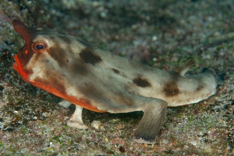 ガラパゴスバットフィッシュは、泳ぐというよりも、海底を「歩く」。四肢のように機能するよう特殊な変化を遂げた胸びれと腹びれ、尻びれを使って、砂や岩のあいだをカエルのように歩いて前進する。