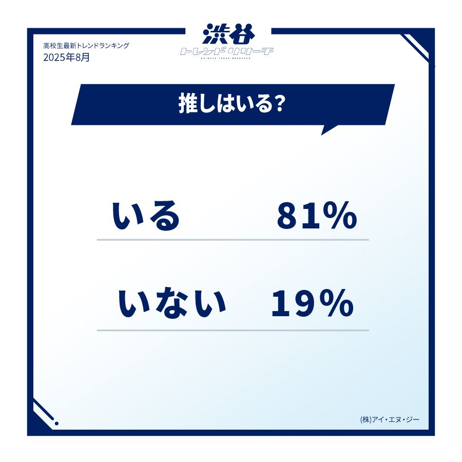 それによると、今推しがいる高校生は8割を超え、ほとんどの人が何かしらの「推し」がいることがわかった。