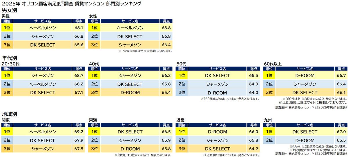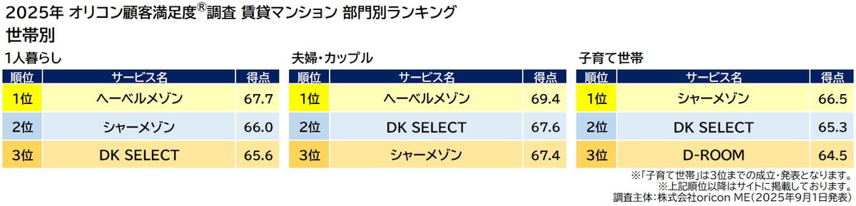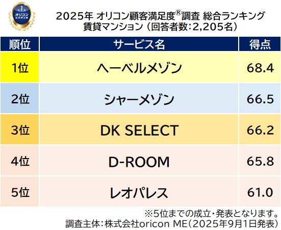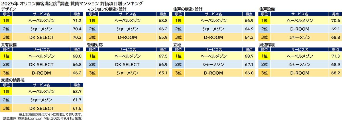 出典:オリコン顧客満足度ランキング「賃貸マンション」より