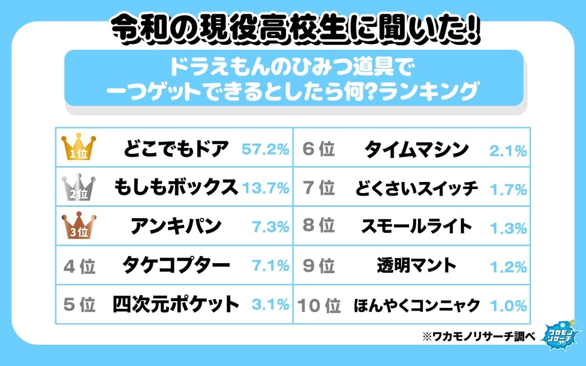 続いて8位は「スモールライト」、9位に「透明マント」、10位は「ほんやくコンニャク」。10位の「ほんやくコンニャク」は現在のAIとほぼ同じ役割を持つ道具だ。そう考えると、他の道具も非現実的ではないのかもしれない……とこれまた夢想が続く。