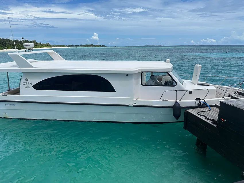 今回、最初に訪れたのは「オーゼン・ライフ・マードゥー」。ヴェラナ国際空港からスピードボートに揺られること約45分。モルディブの南マーレ環礁に位置するこのリゾートに辿り着く。