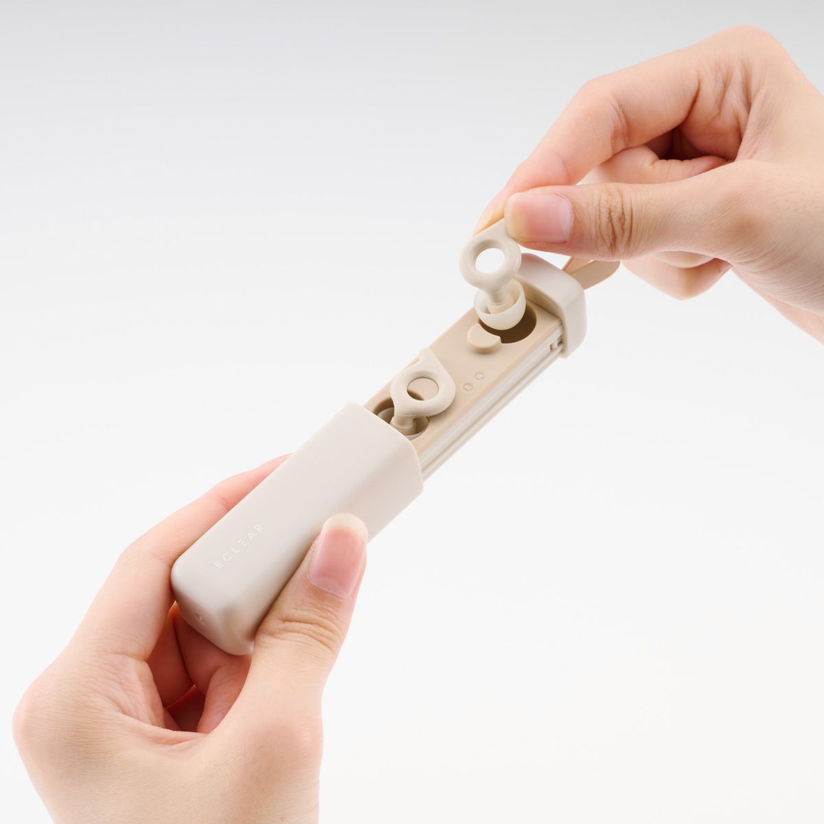 収納や持ち運びに便利なケースが付属。本体は水洗いが可能で、いつでも清潔に保つことができる。