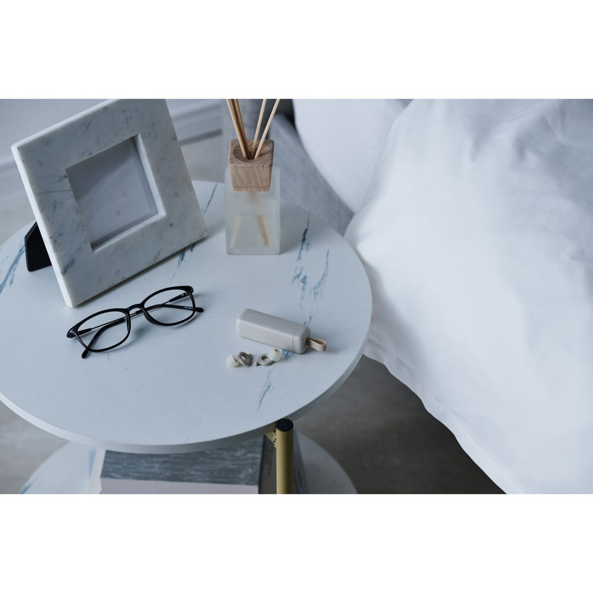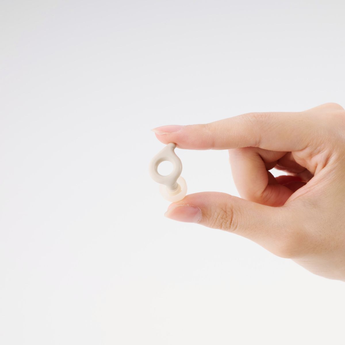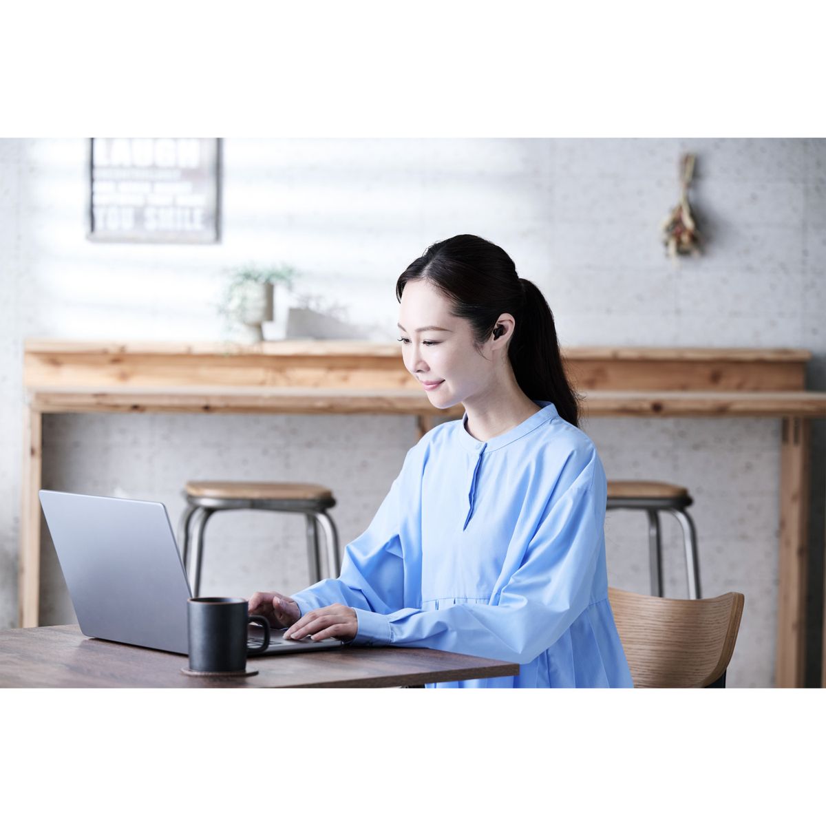 本体は重量約1gと軽く、耳穴に収まる薄型設計。横向きで寝ていても自然な着け心地を得られる。また、オフィスでの作業中やカフェでの読書中など集中したいシーンで使う際に、目立ちにくいのも嬉しいところだ。