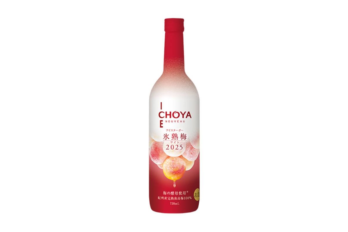 チョーヤ梅酒が数量限定で発売した「CHOYA ICE NOUVEAU 氷熟梅ワイン2025」は、2025年6月に収穫した紀州産完熟南高梅を醸造した梅のアイスワイン。発酵の際に梅酵母を一部使用していて、通常発酵よりもさらに熟れた桃のようにフルーティで華やかな香りと、爽やかで初々しい甘酸っぱさを感じられる味わいに仕上がっている。