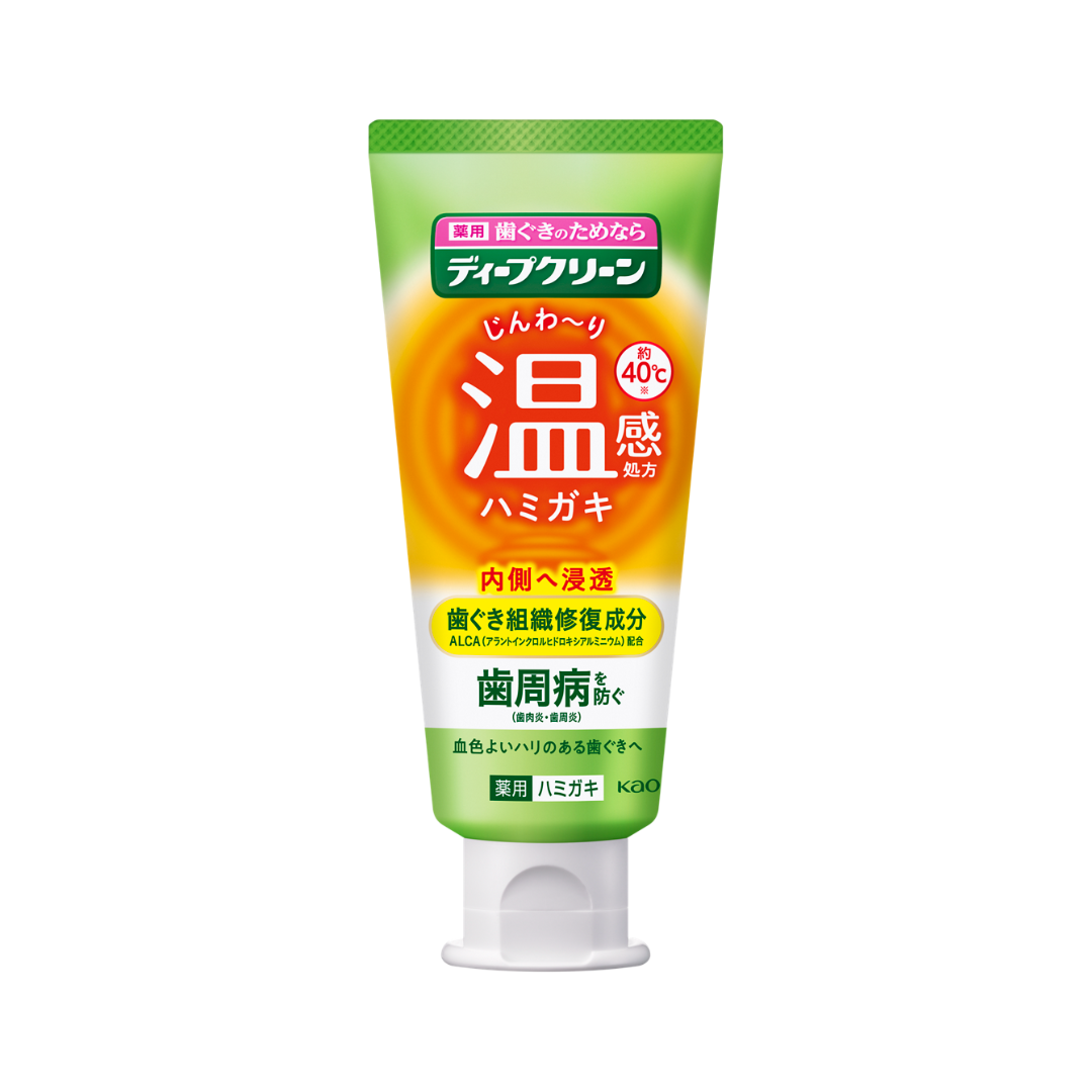 花王の「ディープクリーン 薬用温感ハミガキ」は、製品名の通り、「温感」が持続するユニークな処方が特長。歯磨きを始めると、約40℃の心地よい温感がじんわりと口内に広がって約3分間持続する、これまでにないオーラルケア体験を実現している。