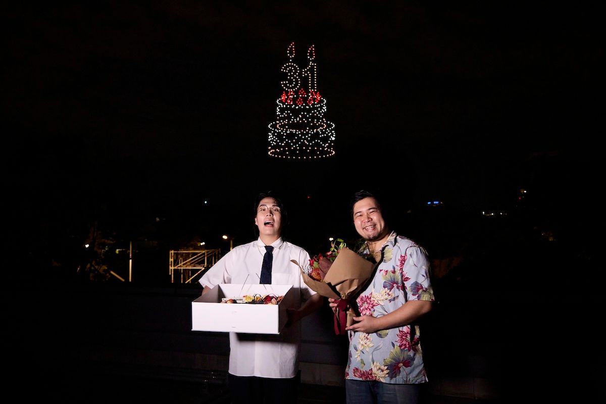 この日はくるまの31歳の誕生日前夜。番組収録後には、サプライズでドローンによる誕生日ケーキが夜空に登場し、くるまらを驚かせた。