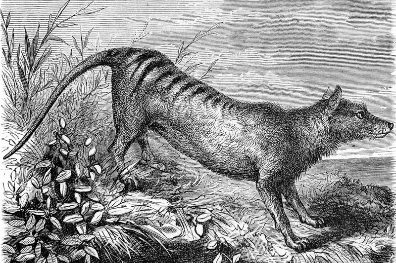 素人目には、この動物はイヌかオオカミに似ているように見える。だが、もっとよく調べると、重要な違いがあらわになる。体つきはイヌやオオカミよりも引き締まっていて、尾はカンガルーの尾に近く、背中の後方はトラそっくりの縞模様になっている。この動物はフクロオオカミ(学名:Thylacinus cynocephalus)だ。
