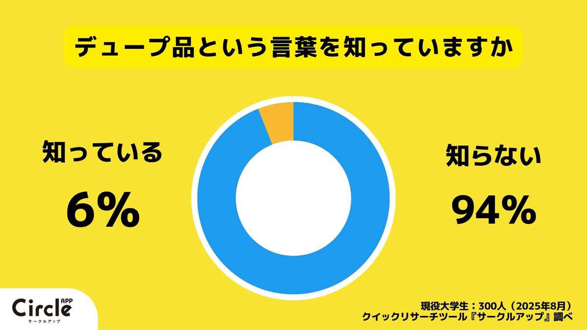 それによると、「デュープ品」という言葉を知っている人は、わずか6%で、まだまだ浸透していない。しかし、実際にデュープ品を「よく買う」「たまに買う」「あまり買わない」を合わせた「購入経験者」は31%いることがわかった。