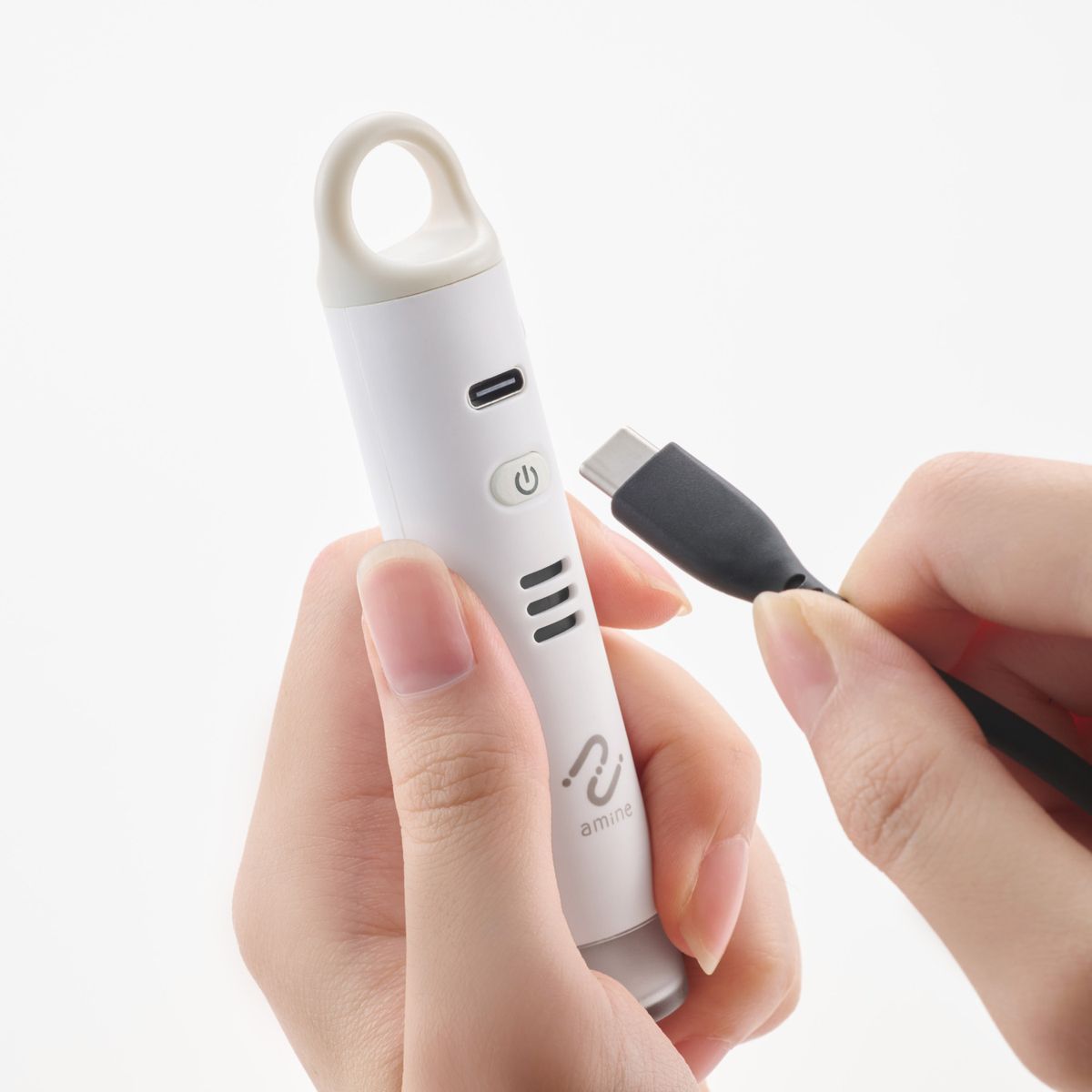 本体重量は約35gと軽量で、IP65の防塵・防水仕様のため、持ち運びしやすい。バッテリーを内蔵していて、USB Type-Cケーブルで充電。1回の満充電で約6カ月間の使用が可能だ。