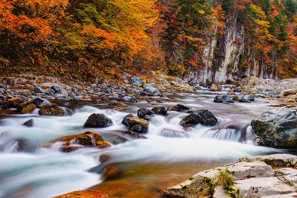 「渓谷美と原生林が染まる静寂の紅葉」というトレッキングコース。アクセスの評価は低いが、それが穴場の証でもある。例年の見ごろは10月中旬から下旬。