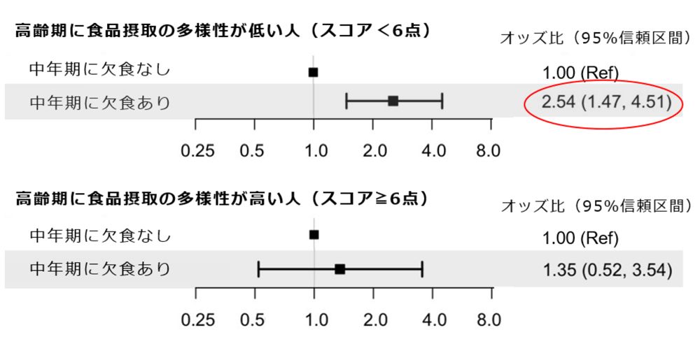 しかし、取り返しが付かないわけではない。調査では、中年期に欠食習慣があった人でも、高齢期に多様な食品を食事に取り入れることでフレイル発症率を下げられることがわかったのだ。