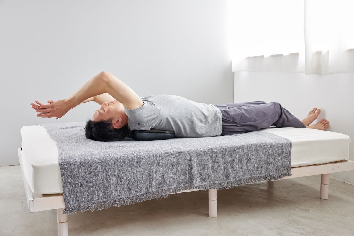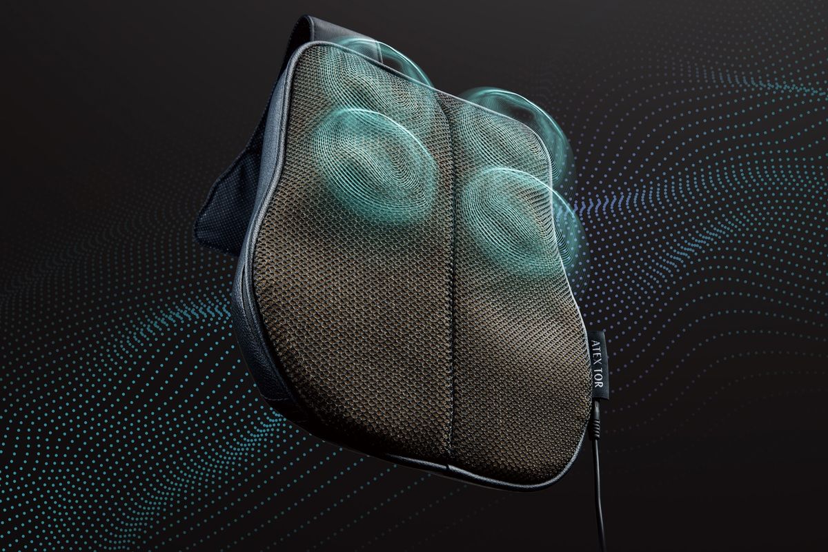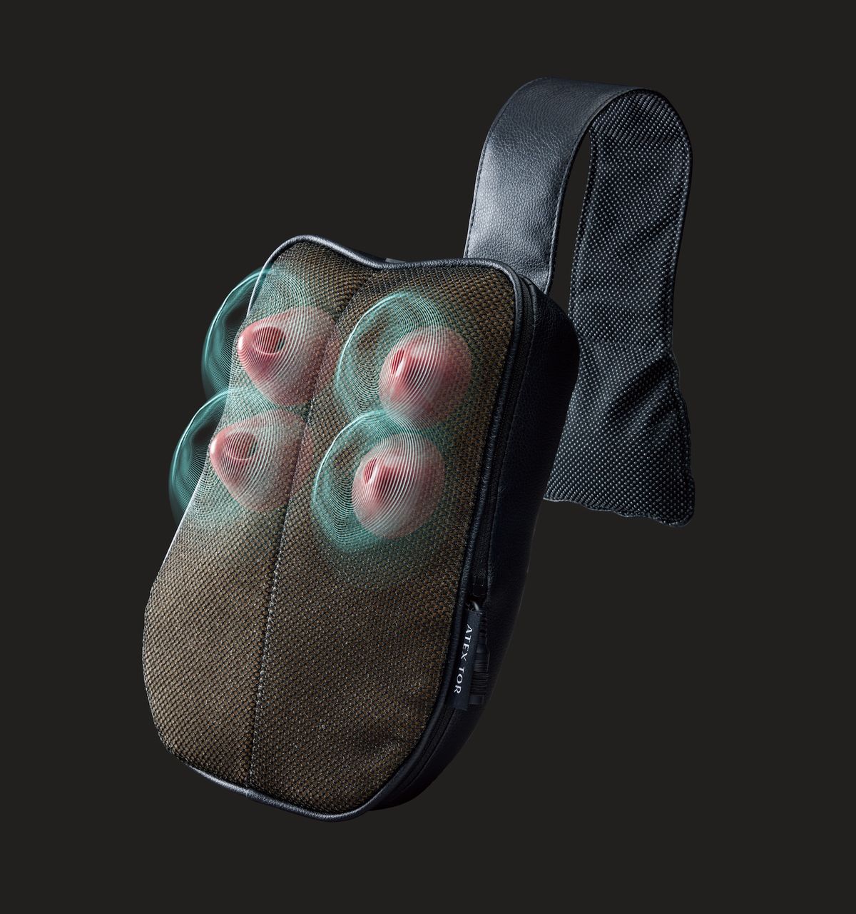 そんな肩甲骨まわりのこりをほぐしてケアしてくれるのが、アテックスの「マッサージクッション 肩甲骨ケア」。搭載された4つのもみ玉が肩甲骨の間にしっかり入り込んで、グイグイとマッサージ。上に寝転んでも体重を広く分散する設計になっていて、肩甲骨まわりを強めにもみほぐすことができる。
