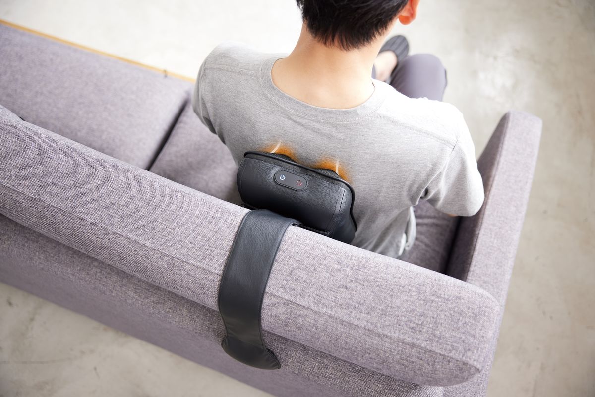 肩甲骨まわりをケアする左右非対称の「ゆらしモード」と、首や肩のこりに適した「はさみモード」の2種類を搭載。もみ玉の回転速度に緩急をつけた「プロもみ」など、3種類の速度を選べる。椅子やソファにに引っかけて設置するための「もみ位置調整ベルト」が付属するので、座ったまま使用する際も、もみ玉の当たる位置をぴったり調整できるのがうれしい。