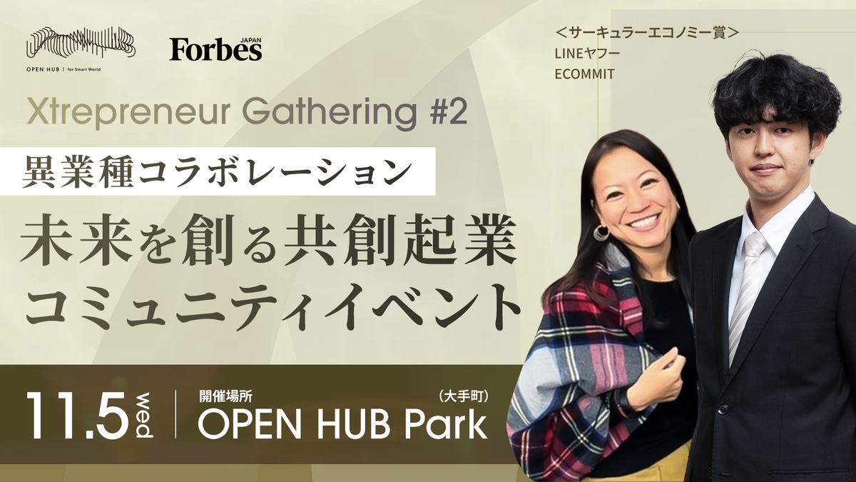 共創事業に取り組む関係者の繋がりが、受賞式だけで終わるのでなく、これからも続いていくコミュニティの場としてForbes JAPAN Xtrepreneur Gathering ♯2を11/5(水)に開催する。