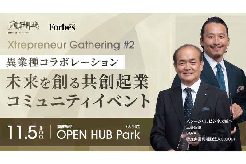 Forbes JAPANとNTTドコモビジネスは、好評だった前回に続き2回目の、共創プロジェクトコミュニティーイベント「Xtrepreneur Gathering ♯2 in OPEN HUB Park 」を2025年11月5日(水)に開催する。