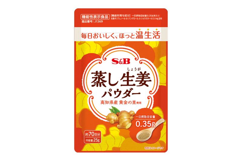 エスビー食品の「蒸し生姜パウダー」は、血行を促進してからだを温める効果があるとされる「生姜ポリフェノール(6-ジンゲロール、6-ショウガオール)」を含む機能性表示食品だ。