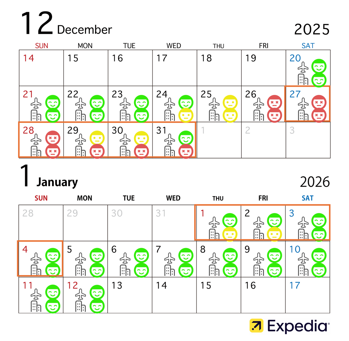 旅行予約サイト大手のエクスペディアが発表したデータによると、今年の年末年始における海外旅行の検索数は前年比110%と増加傾向にある。注目すべきは、フライトやホテルの混雑状況が日程によって大きく異なる点だ。