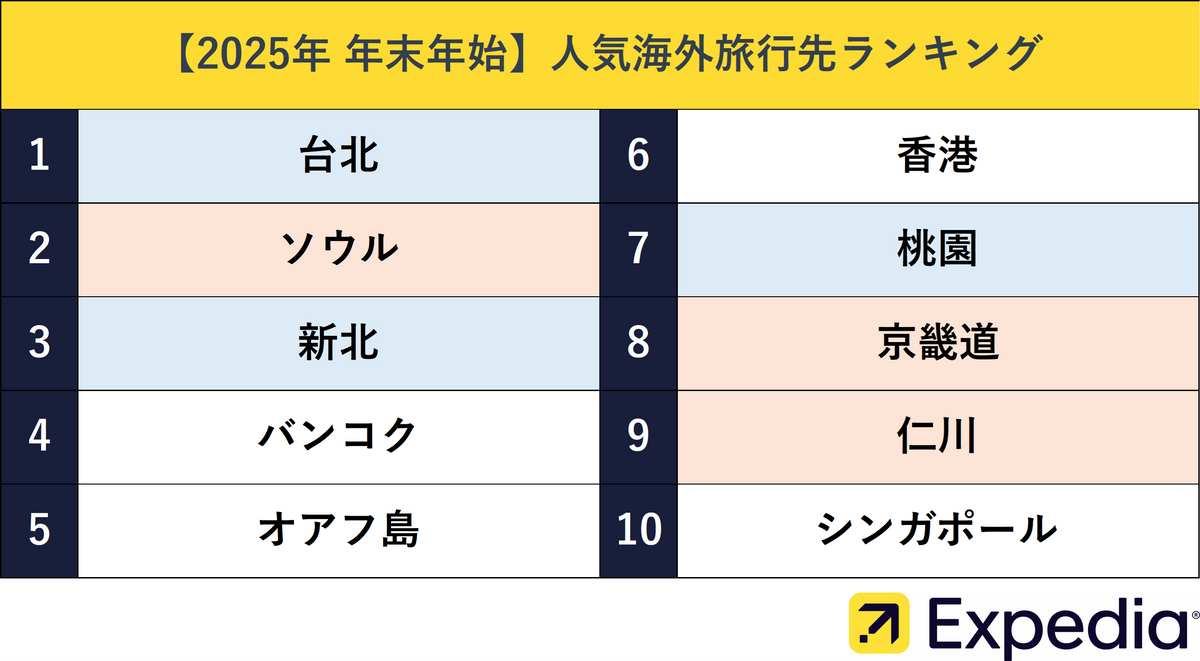 コストパフォーマンスの観点から注目されるのが「穴場」の旅行先だ。今回の年末年始(2025-26年)に向けたランキングでは、人気ランキング11位以降の都市の中から、昨年の価格データをもとに費用が抑えられる旅行先を選出。1位が韓国の釜山、2位が台湾の宜蘭(イーラン)、3位がベトナムのハノイとなった。4位はホーチミン、5位はタイのパタヤと、東南アジアの都市が上位を占めている。