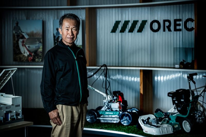 福岡県八女郡に本拠を置くオーレックは「世の中に役立つものを誰よりも先に創る」という創業精神のもと、草刈機や水田除草機といった小型農業機械の分野で独創的な製品を次々と開発してきた。「田んぼの畦(あぜ)や傾斜地などで使われる自走式草刈機」や「果樹園などで雑草を除去する乗用型草刈機」を擁し、自走式および乗用型草刈機の国内市場でトップシェア(約4割)を誇る。代表取締役社長の今村健二が語る。