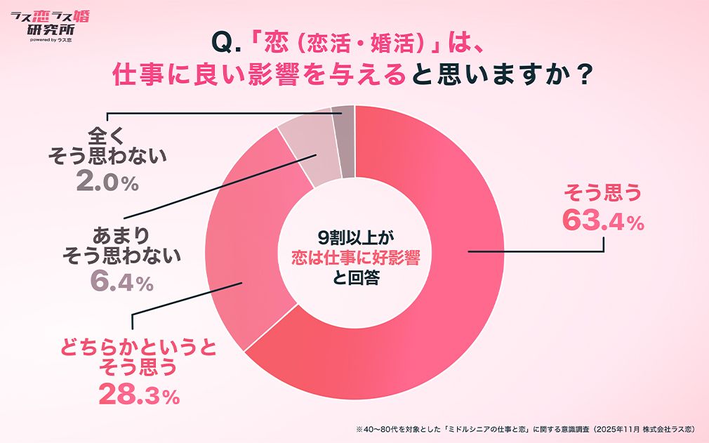 恋活アプリ「ラス恋」の60代のユーザーで、現役で仕事をしている人の割合はほぼ9割。総務省が発表した2024年労働力調査の全国平均を大きく上回る。中高年も恋をすると生きる気力が増すようだ。しかも恋には、経済効果を高める働きもあった。