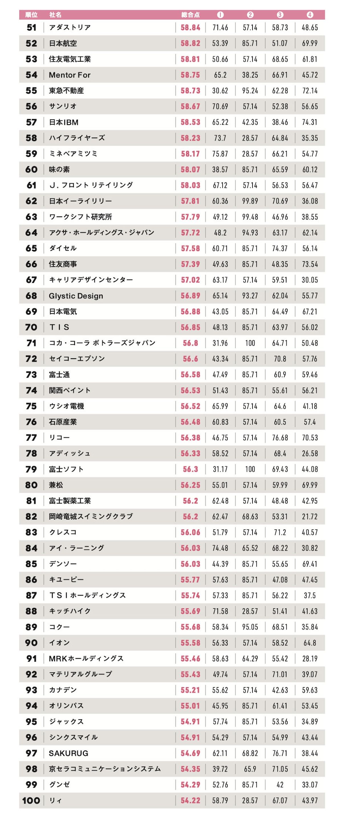 企業総合ランキング 51〜100位