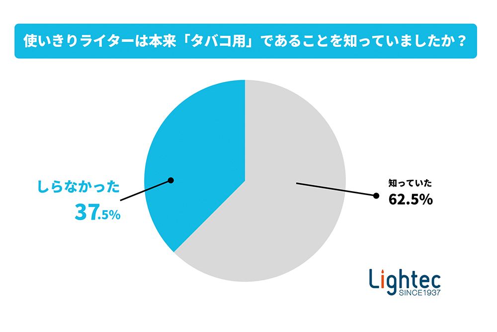 実際、使いきりライターがタバコ専用だと知らない人が4割近い。知っていたとしても、タバコ以外の用途に使うことが危険であるとまで認識しているかどうかは、この調査では明らかになっていない。