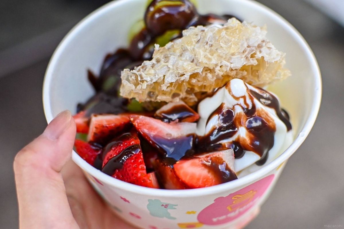 次いで「ヨアジョン」が前年比7.16倍。フローズンヨーグルトにフルーツや蜂の巣をのせるスイーツで、グリークヨーグルトに続く新定番として注目された。