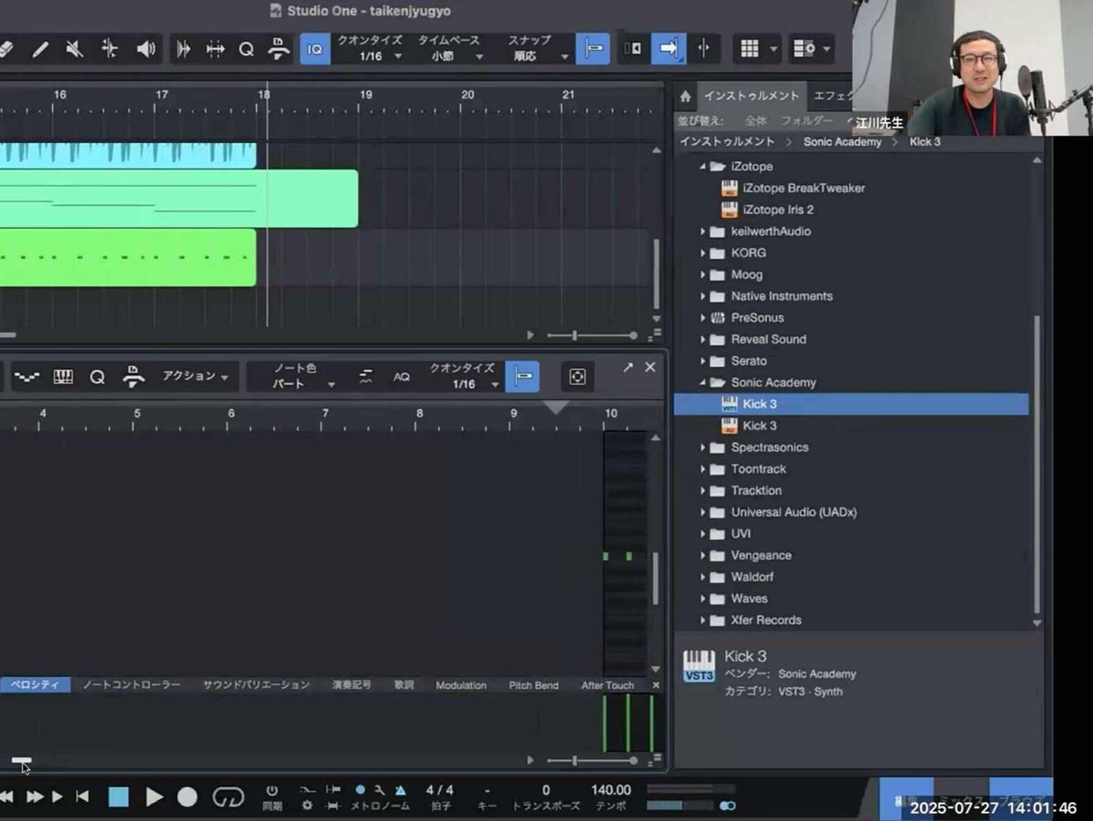 まずは、「楽器が弾けなくても、楽譜が読めなくても音楽制作は始められる」。従来の音楽大学では、入学時点で十分な演奏技術や楽典の知識が求められ、受験準備のために専門塾へ通う学生も珍しくない。しかしDTM(デスクトップミュージック)の発展によって、「最初の一音を鳴らす」ハードルは劇的に下がった。自宅のPCから、指一本で音を並べることからでも音楽制作が始められる。初心者でも、「つくる」という行為そのものにすぐ触れられる時代になっている。