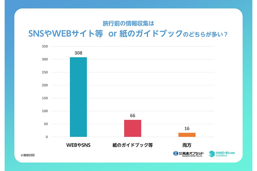 旅行前の情報収集は、デジタルを好む人が圧倒的に多い。パンフレットに対してインターネットの情報量は比べものにならないので、これは当然の結果だろう。