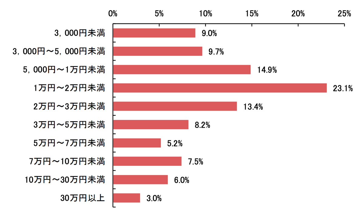 スポーツ関連の「推し活」で過去1年間に使った金額(n=134)