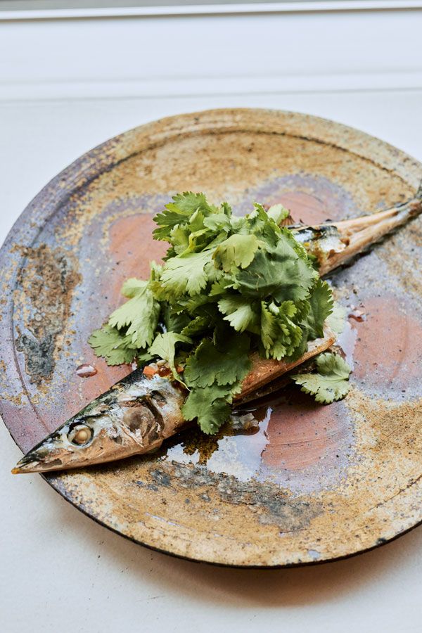 操上氏の行きつけ、東京・白金台「LIKE」の秋刀魚のコンフィ。8時間かけて煮込まれ、頭から尻尾まで骨ごと食べられる。