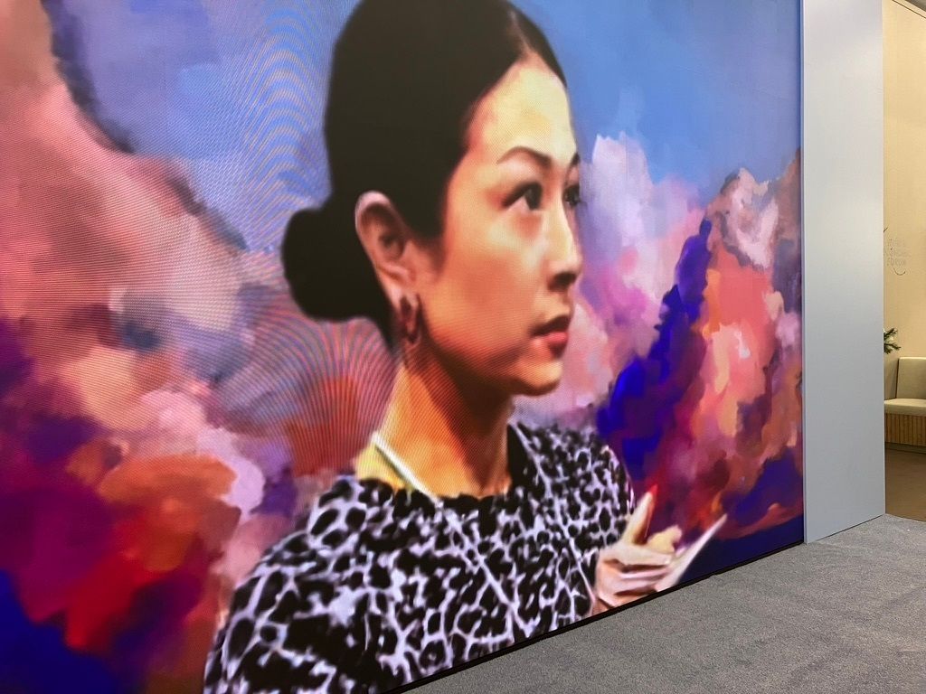 最終日の朝、私はメーン会場に設置された巨大なインスタレーションの前に立った。アーティスト兼テクノロジストのロネン・タンチュムによる『Human Atmospheres』。世界経済フォーラムの依頼で制作されたこの作品は、参加者の動きに応じて画面に映し出された環境が変わり、人間の存在によって「生きたデジタル生態系」を形作るインタラクティブなジェネレーティブ・アートである。