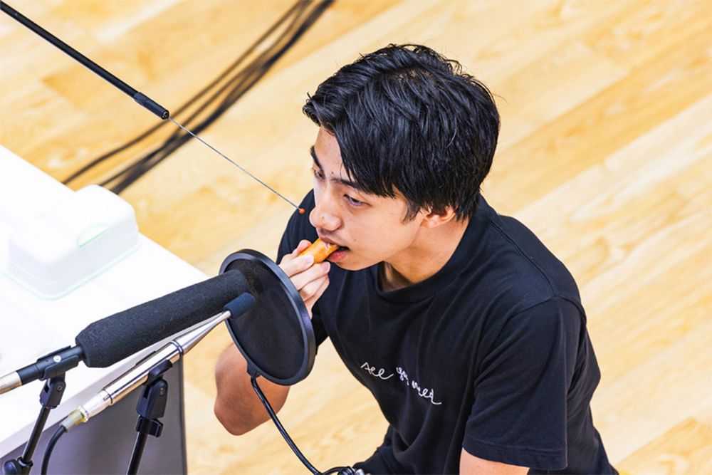 日本ハムは、そのこだわりの音が味にどう影響するかを解明しようと日本音響研究所に検証実験を依頼した。10〜60歳代の男女16人に協力してもらい、シャウエッセンを含む日本ハムのウインナーソーセージ3種類、他社製品2種類の合計5種類を食べるときの音を収録した。