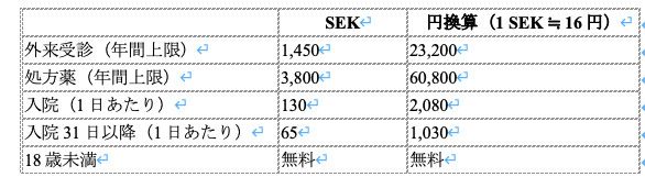 ※ 高額医療保護制度(högkostnadsskydd)により、年間上限を超える支払いは不要