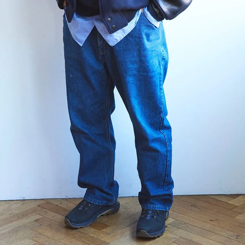 「おそらく、今の主流とは少し違う穿き方かもしれません。505は本来、ほんのりテーパードが利いたシルエット。だからこそ“ジャストできれいに穿く”のが定石とされています。でも、僕の場合はイージーパンツを穿くようなルーズなバランス。そうでなければこの極太のシルエットは出せませんし、何より今の自分にしっくりこないんですよね」。