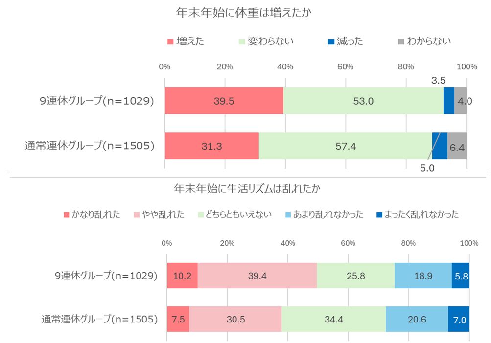 この調査では、休暇が長いと高血糖リスクが高まる傾向が示された。正月休みの暴飲暴食の影響がHbA1cに現れるのが2月から3月。実際に、年間でもっとも高い数値が示される時期だという。日本生活習慣病予防協会代表の和田高士氏は、9連休グループの人たちは高血糖になっている可能性が明らかだと指摘する。心当たりのある人は、今から運動をするなど、血糖コントロールを実施すべきだろう。