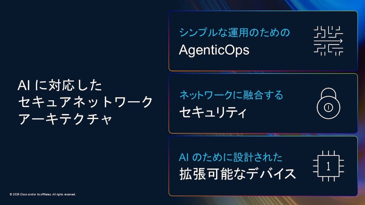 シスコは、ネットワークのトラフィックそのものをセキュリティのセンサーとして活用し、異常を即座に検知・封じ込めるという設計思想を掲げている。こうした高度な防御の仕組みを、デザインの段階からデフォルトで備えることが、シスコが提供するAIに対応したセキュアネットワークの真価となっているのだ。