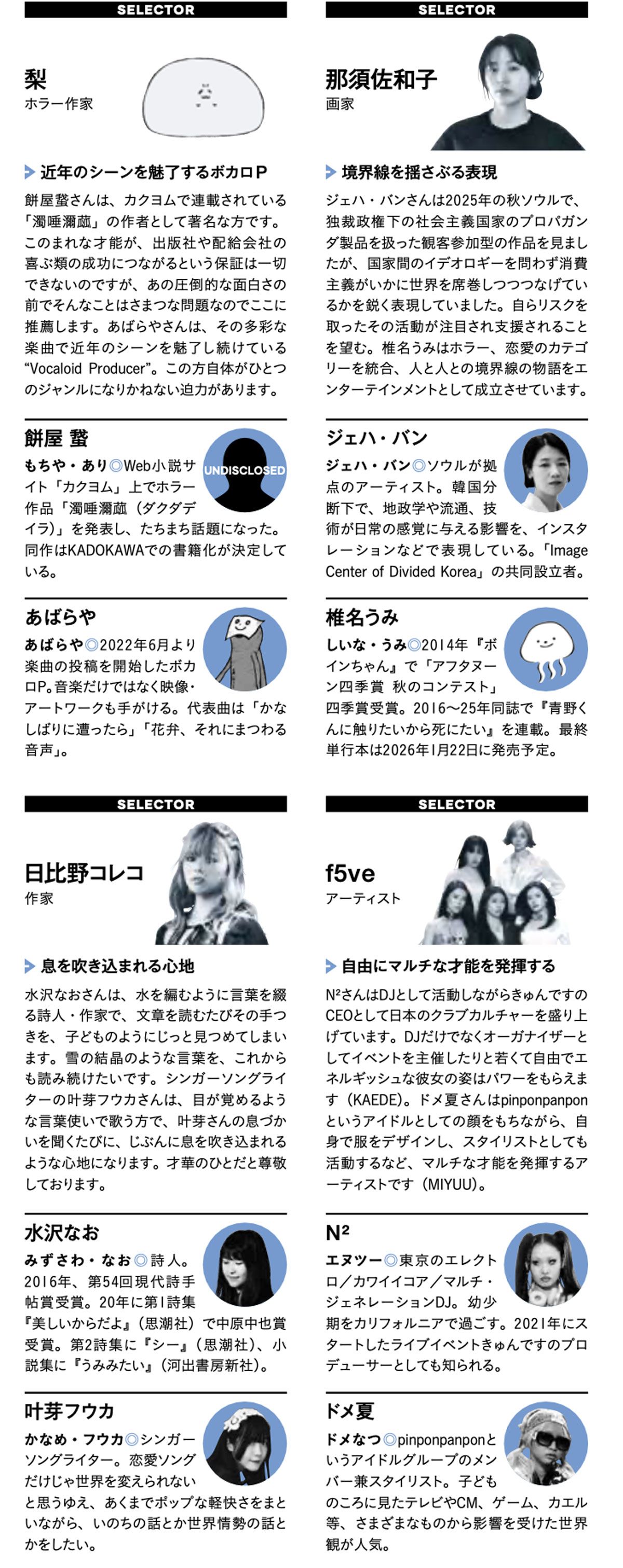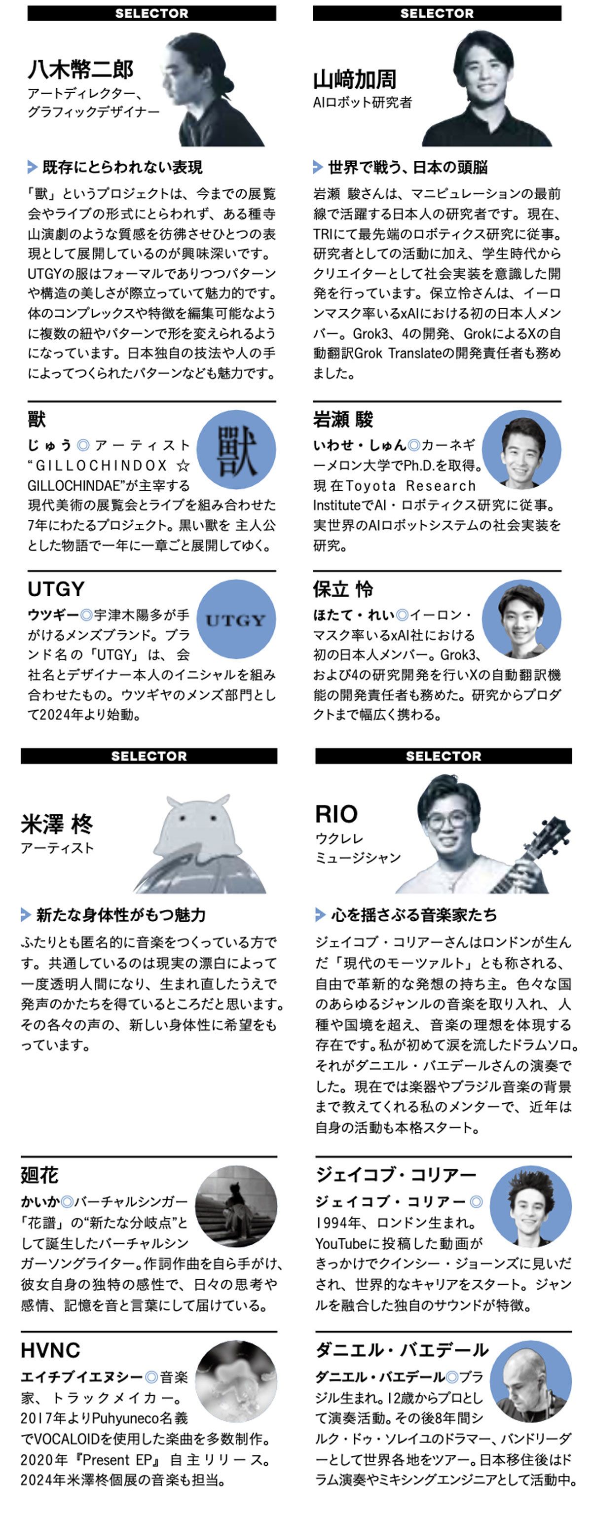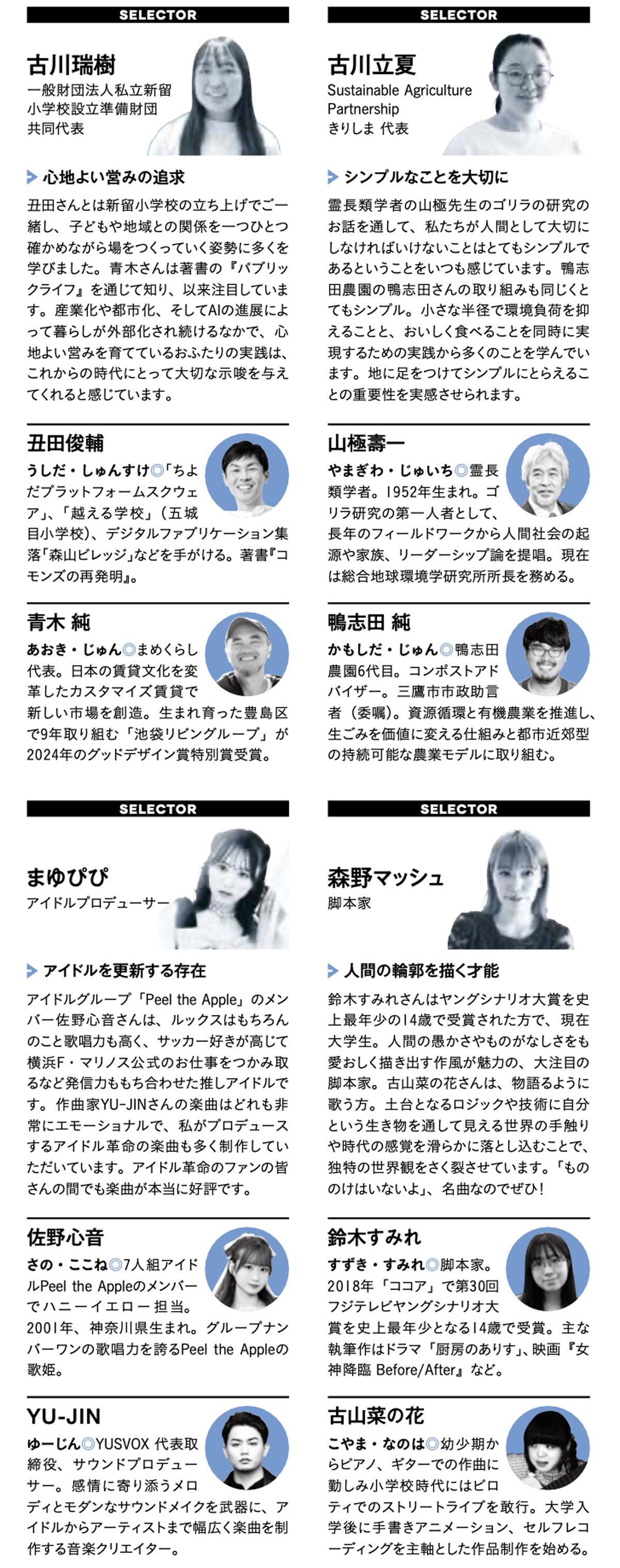 このほか、俳優/モデルの梶原叶渚、クリエイティブディレクター / 映像監督の鈴木健太、文筆家の伊藤亜和、インフルエンサーの都もアンケートに回答。それぞれのインタビューを別記事で掲載している。