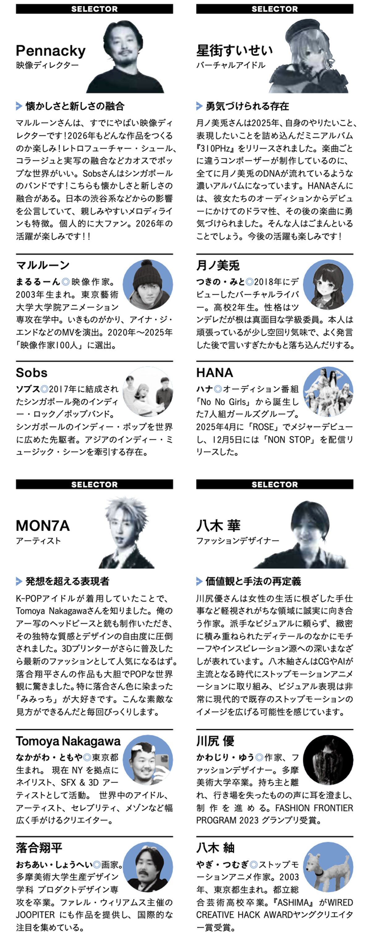 4人が選んだ、2026年に「自身の領域で推したい人」「領域問わず推したい人」は以下の通り。