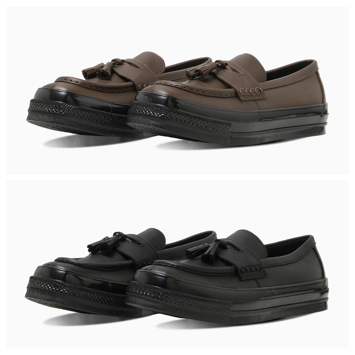 ブランドの定番モデル「ALL STAR(オールスター)」に、スクエアトウを組み合わせたデザイン。トレンドのタッセルローファーパターンを採用し、タッセルパーツは取り外しが可能。コインローファーのスタイルでも着用できるユニークな仕様だ。