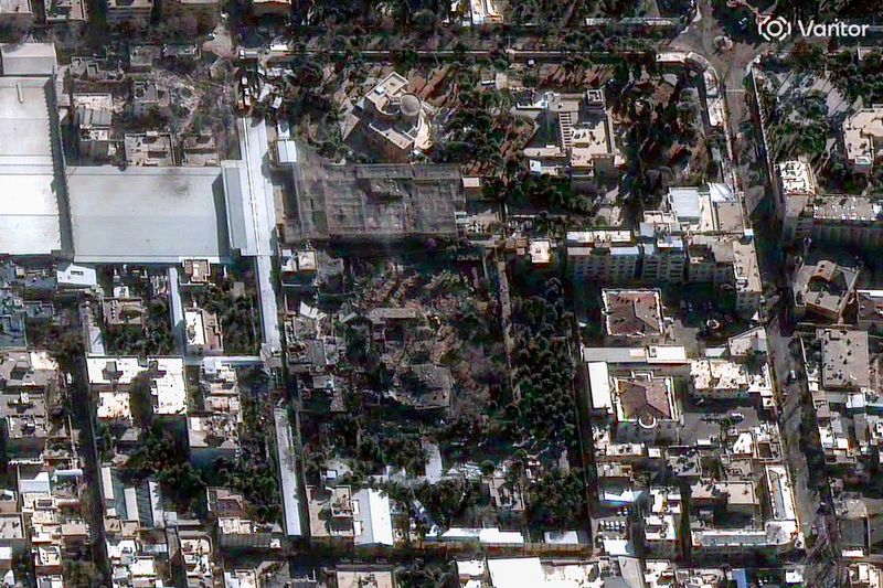 米軍とイスラエル軍の攻撃後、イラン首都テヘランにある最高指導者ハメネイ師の邸宅の敷地内で複数の建物が破壊されている様子を捉えた衛星画像(Satellite image (c) 2026 Vantor/Maxar/Getty Images)
