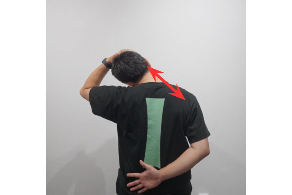 もうひとつは、首と肩の周囲の筋肉の緊張を緩和する「首倒しストレッチ」。局所の血流や循環を促し筋肉の緊張を緩和すると、呼吸がしやすくなることが期待される。「鼻の通りがよくなったように感じる」との意見も聞かれた。