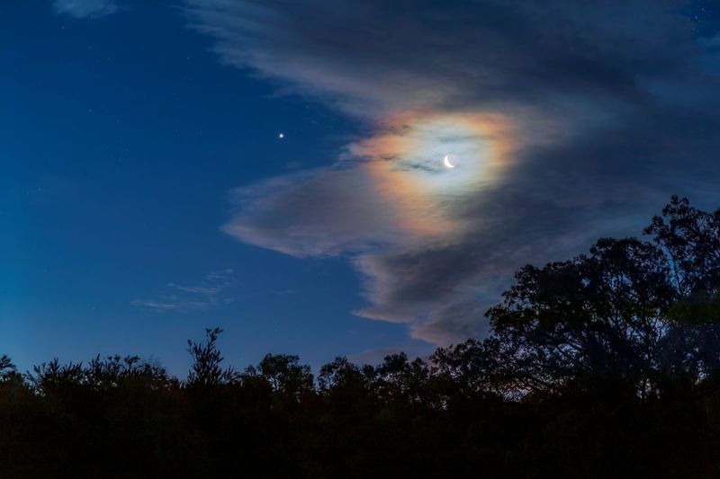 いっそう細くなった月が夜明け前の短い時間、南東の低空で再び「地球照」をまとう。日の出の約1時間前に早起きして、薄明の空を眺めてみよう。新月はもう目前だ。
