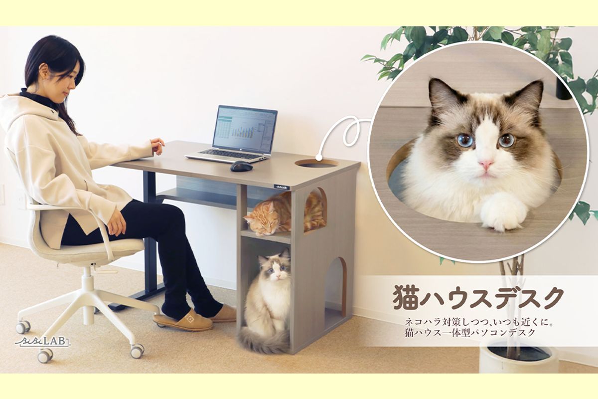 アウトドアブランドDODなどを展開するビーズの趣味グッズブランド「ビビラボ」から、ネコハウス一体型のパソコンデスク「猫ハウスデスク」が発売された。幅100センチメートル、奥行き60センチメートルのデスクの下には、仕事中もネコと触れあえ、それでいてネコハラを防止できる4つの仕掛け「にゃんギミック」が搭載されている。