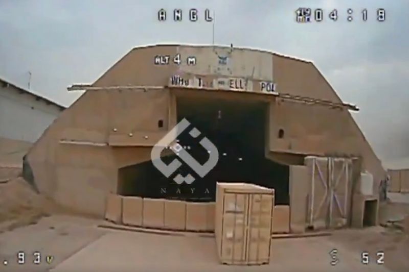Seen here, the FPV munition flies around Victory Base near Baghdad International Airport before slamming into a building. pic.twitter.com/yNugU8iQVL
